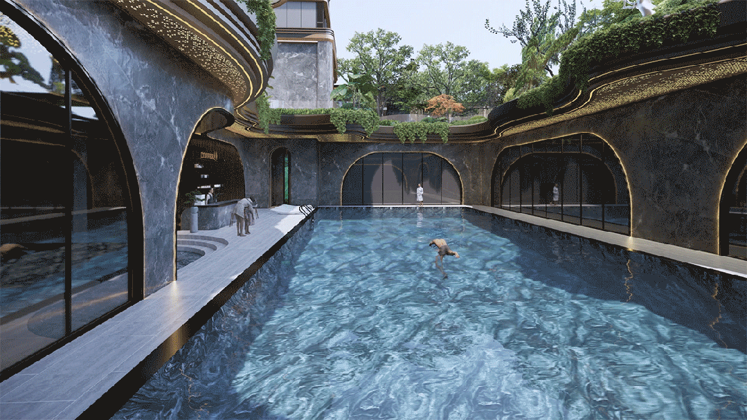 负一层会所虽还未对外,但高尺度的设想,值得等候,具有约25米长,10米宽,1。5米深的会所泳池,将采用普拉达绿大理石通铺,流水飘荡下,熠熠生辉。四周配备了男女室、淋浴间、洗手间、储物间等,就连办事吧台及露天阳光躺椅,也全数对标五星酒酒店。